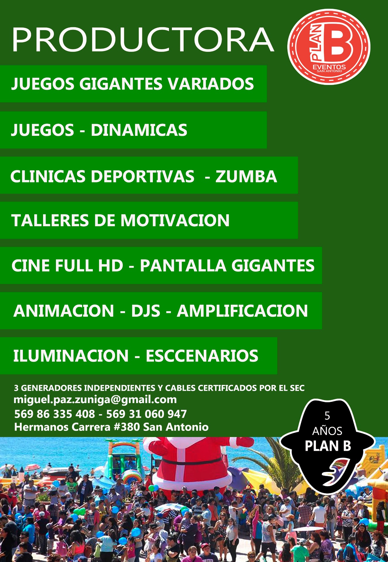 -REALIZAMOS EVENTOS MASIVOS DE ENTRETENCION, TENEMOS EQUIPAMIENTO PARA CUBRIR SOBRE 2000 PERSONAS.